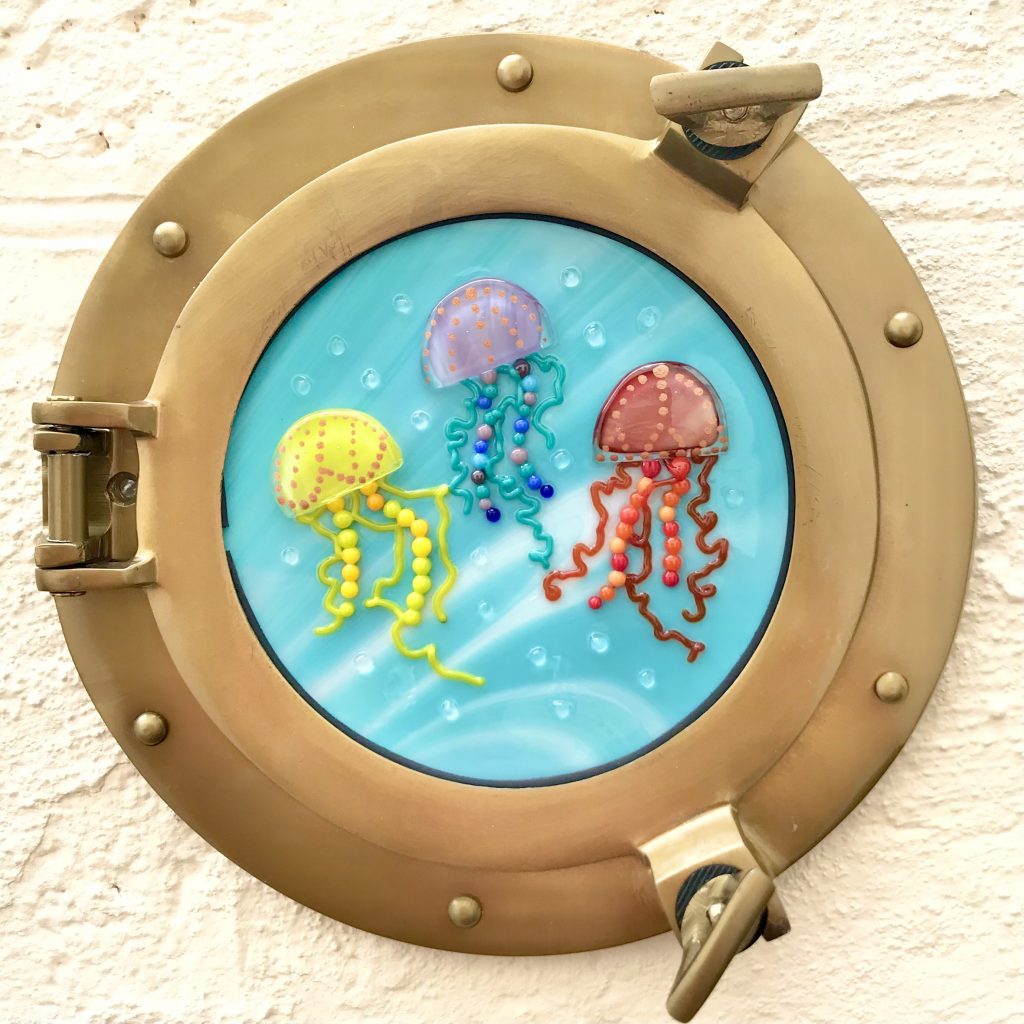 This is a gallery collection of all the designs I have created to date and can make to order. Each one is unique, each one cut by hand, each one with different swirls in the glass. If there is a design you don’t see but you’d like me to make for you just get in touch; otherwise you can order from the Porthole page in the site shop.