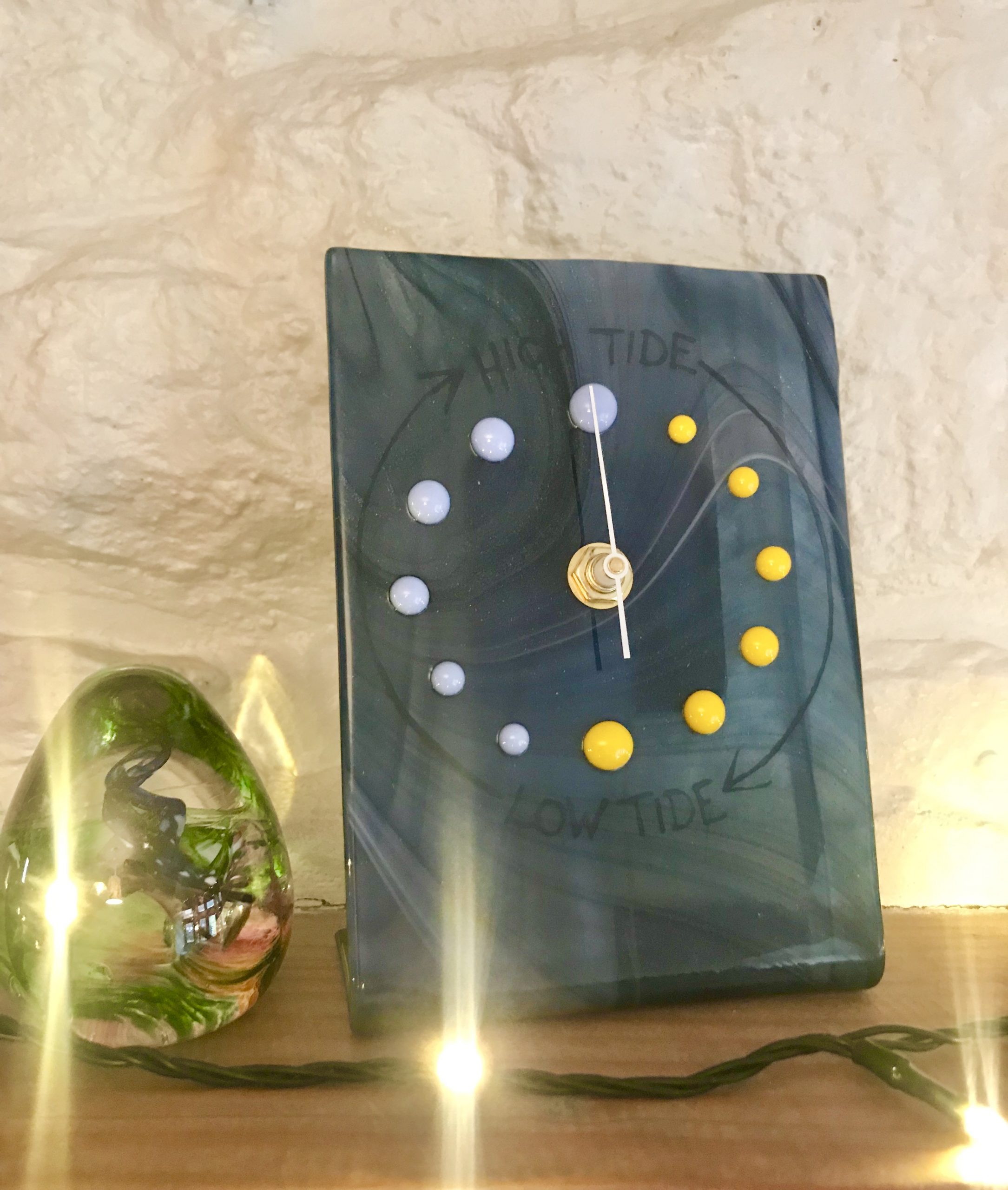 Made from beautiful streaky, shimmery Dreamcatcher glass with an aventurine swirl and featuring a single hand tide movement all you need do is set this clock to the tide of your favourite beach and you’ll be able to tell the perfect time to swim at a glance with this Tide Clock.