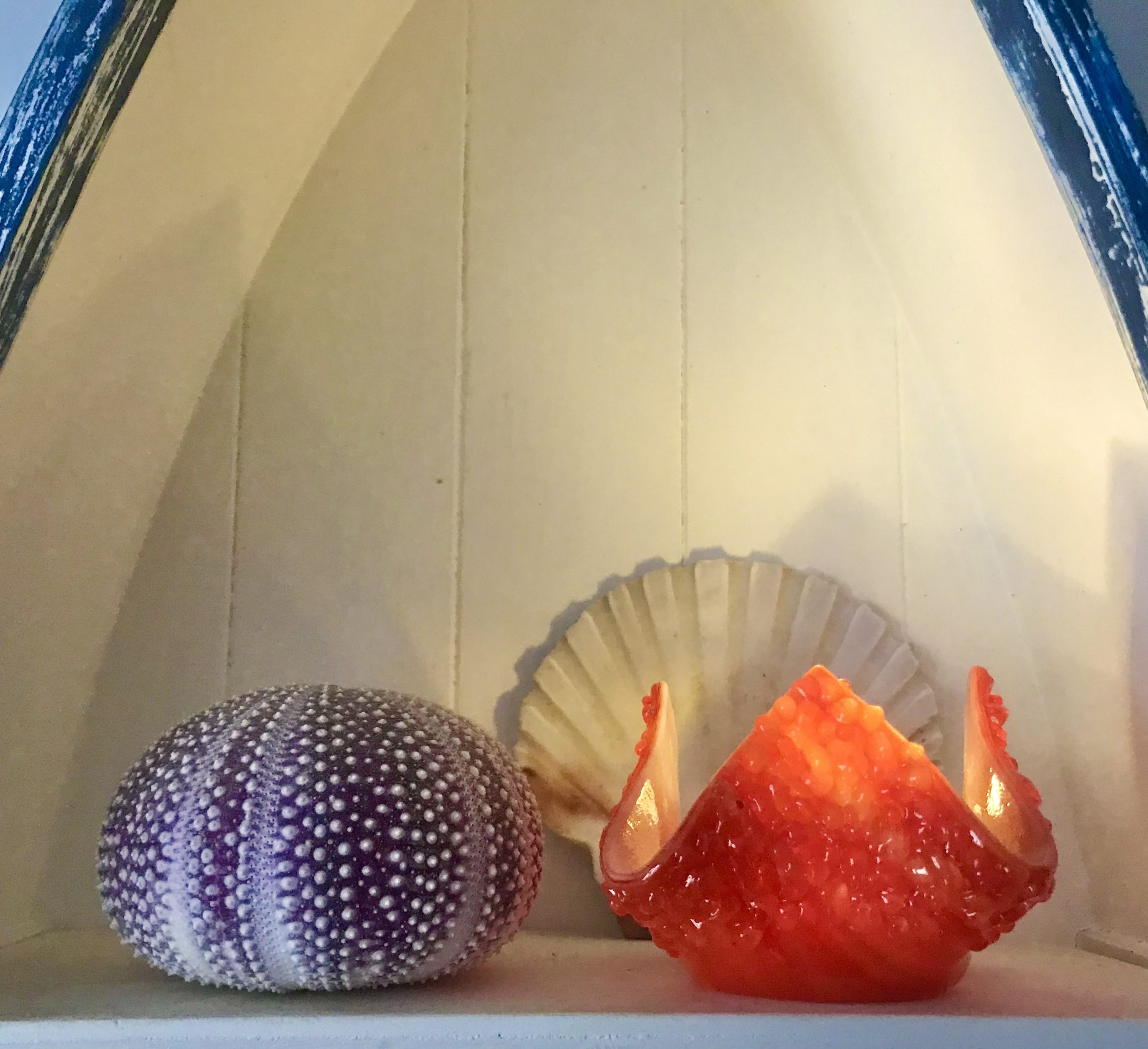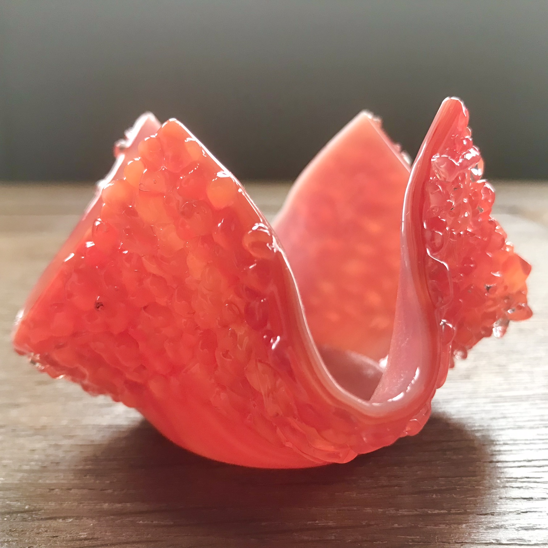 Autumn Flame Pearl Opal glass is enhanced with coarse clear frit to glow from within.