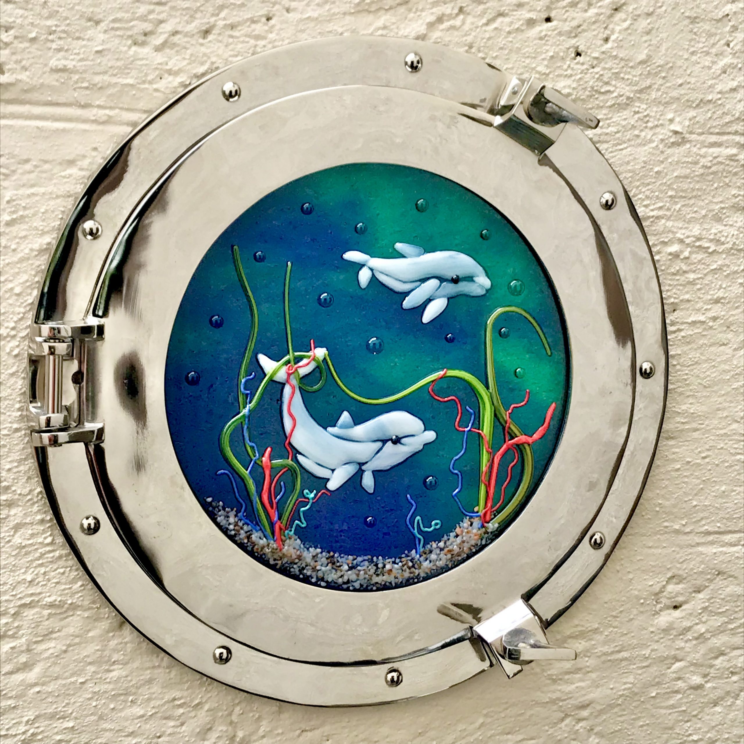 A lifelong fascination of dolphins and love of the ocean inspired this beautiful porthole mounted piece.